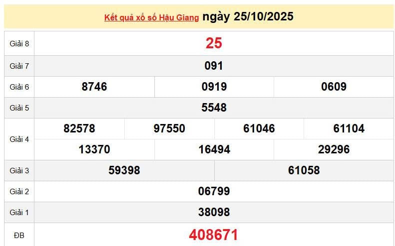 XSHG 25/10, KQXSHG 25/10, kết quả xổ số Hậu Giang ngày 25/10/2025