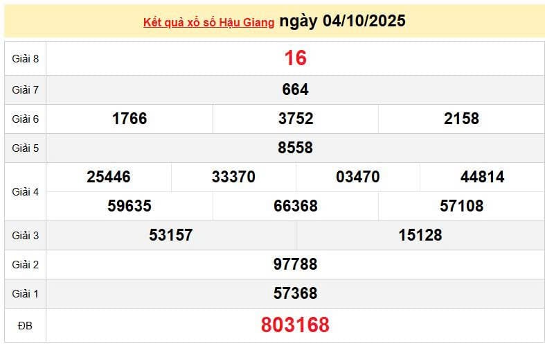 XSHG 4/10, KQXSHG 4/10, kết quả xổ số Hậu Giang ngày 4/10/2025