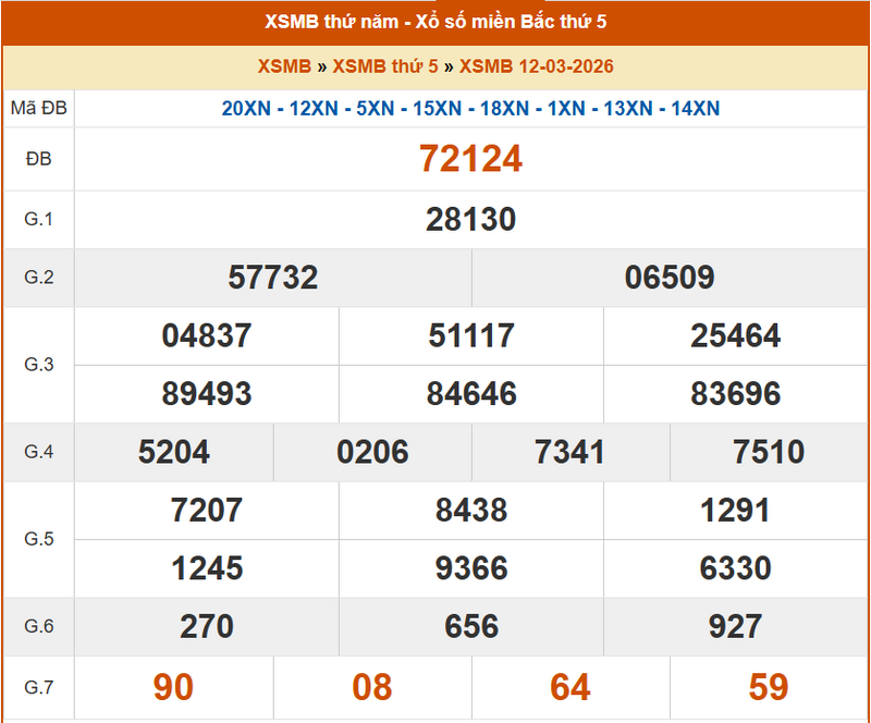 XSHN 12/3, KQXSHN 12/3. Xem lại kết quả xổ số Hà Nội ngày 12/3/2026