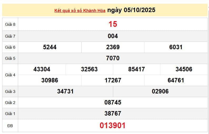 XSKH 5/10, KQXSKH 5/10. Xem lại kết quả xổ số Khánh Hòa ngày 5/10/2025