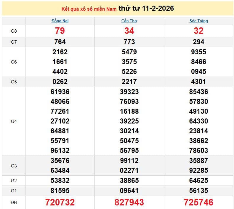 XSMN 11/2, KQXSMN 11/2. Xem lại kết quả xổ số miền Nam ngày 11/2/2026