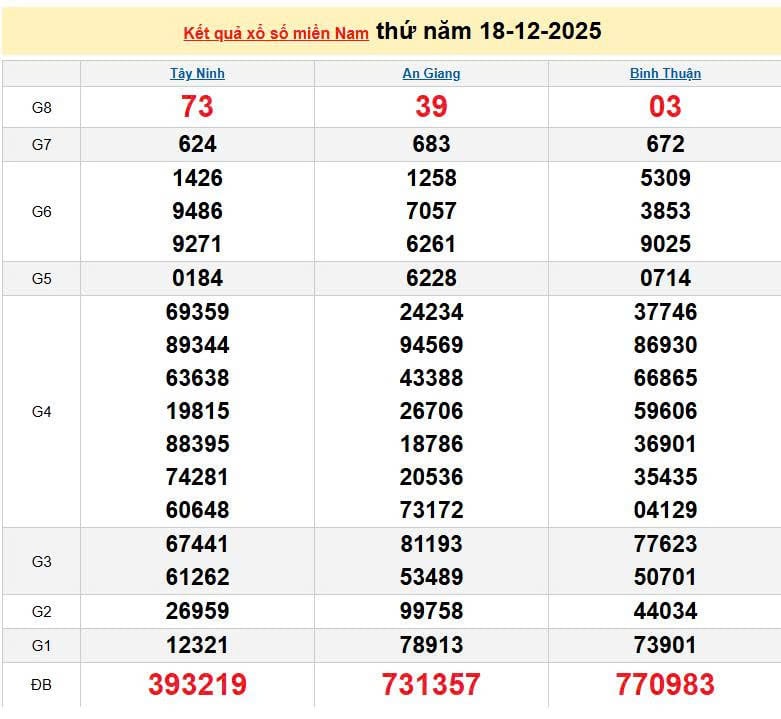 XSMN 18/12, KQXSMN 18/12. Xem lại kết quả xổ số miền Nam ngày 18/12/2025