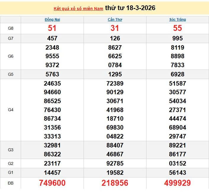 XSMN 18/3, KQXSMN 18/3. Xem lại kết quả xổ số miền Nam ngày 18/3/2026