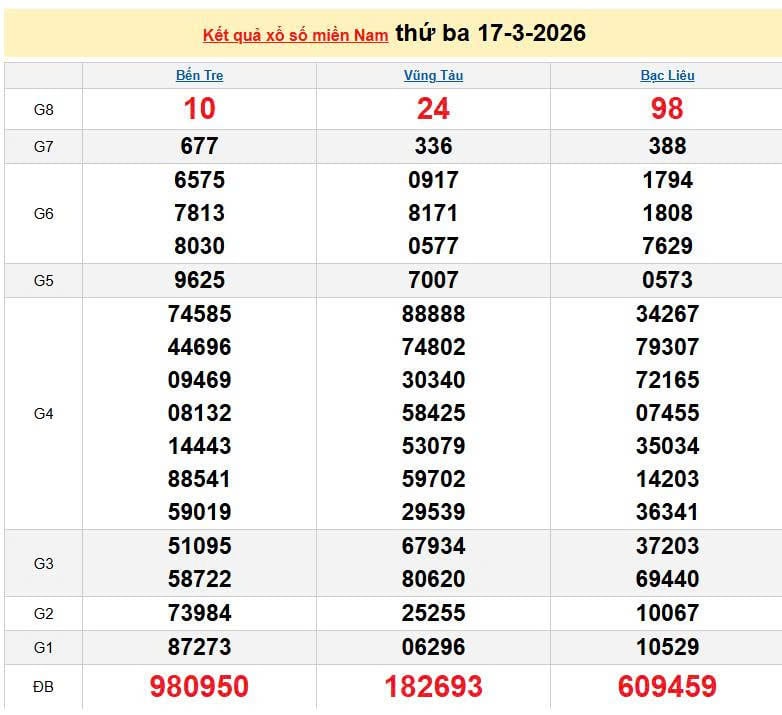 XSMN 17/3, KQXSMN 17/3. Xem lại kết quả xổ số miền Nam ngày 17/3/2026
