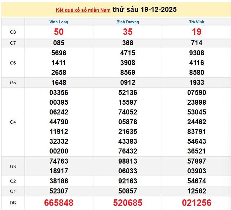 XSMN 19/12, KQXSMN 19/12. Xem lại kết quả xổ số miền Nam ngày 19/12/2025