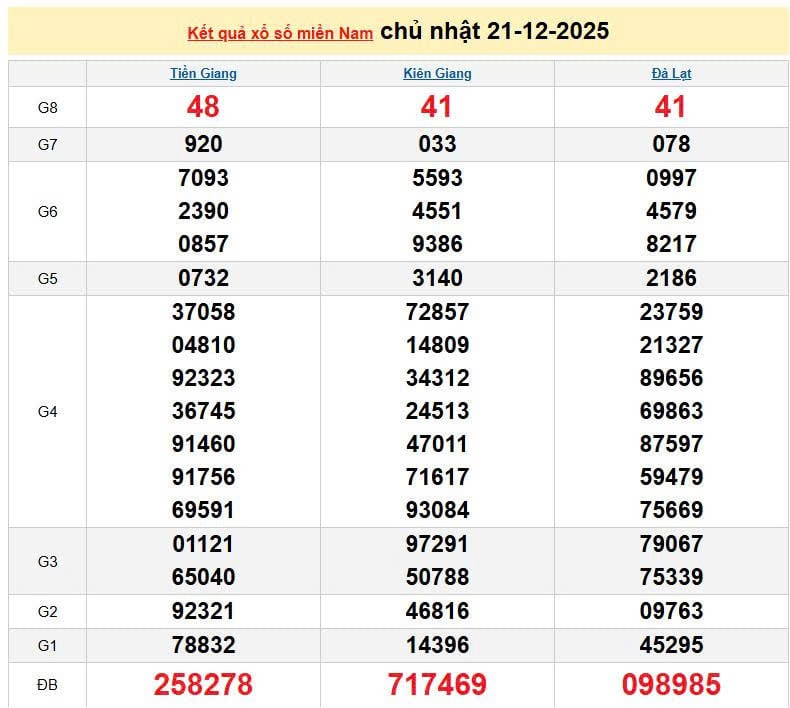 XSMN 21/12, KQXSMN 21/12. Xem lại kết quả xổ số miền Nam ngày 21/12/2025