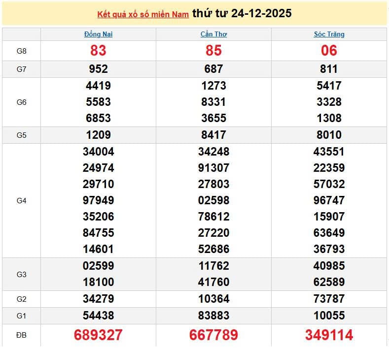 XSMN 24/12, KQXSMN 24/12, kết quả xổ số miền Nam ngày 24/12/2025
