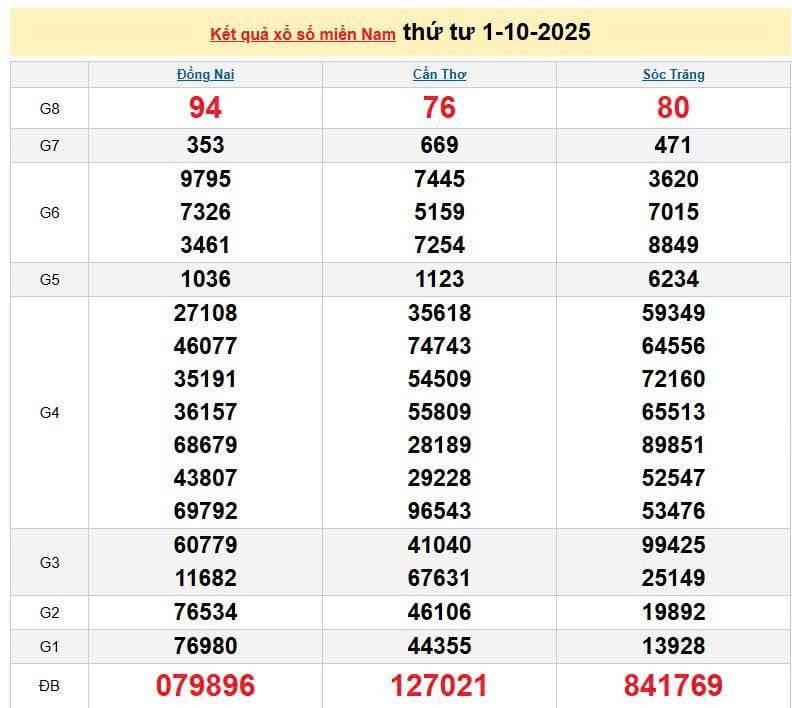 XSMN 1/10, KQXSMN 1/10. Xem lại kết quả xổ số miền Nam ngày 1/10/2025