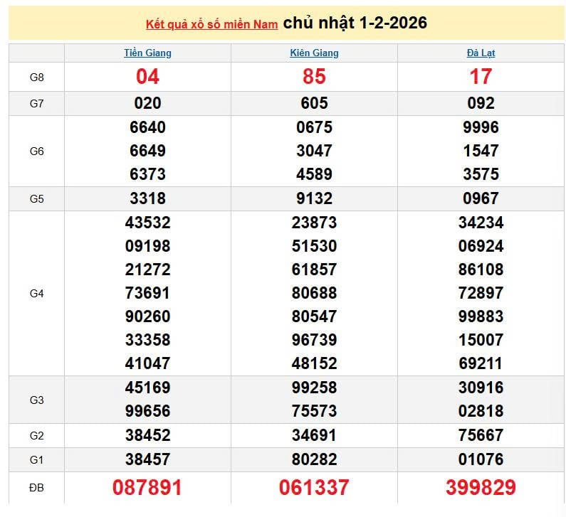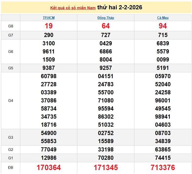 XSMN 2/2, KQXSMN 2/2. Xem lại kết quả xổ số miền Nam ngày 2/2/2026