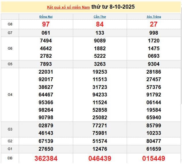 XSMN 8/10, KQXSMN 8/10. Xem lại kết quả xổ số miền Nam ngày 8/10/2025