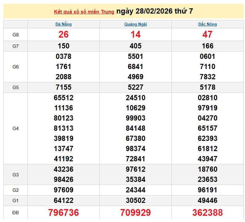XSMT 28/2, KQXSMT 28/2. Xem lại kết quả xổ số miền Trung ngày 28/2/2026