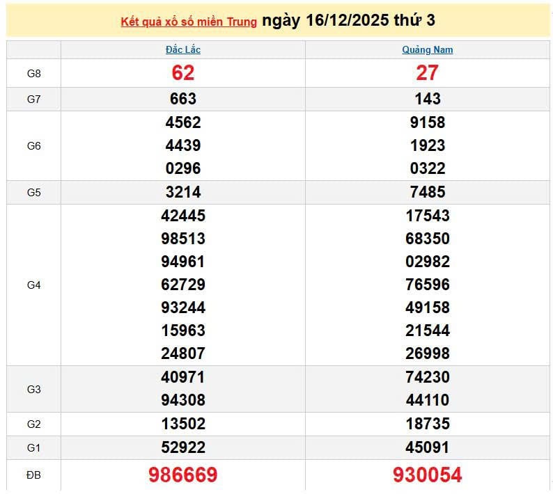 XSMT 16/12, KQXSMT 16/12. Xem lại kết quả xổ số miền Trung ngày 16/12/2025