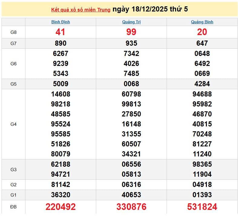 XSMT 18/12, KQXSMT 18/12. Xem lại kết quả xổ số miền Trung ngày 18/12/2025
