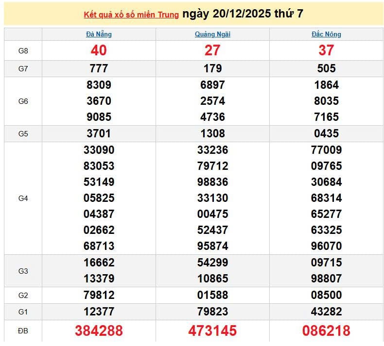 XSMT 20/12, KQXSMT 20/12. Xem lại kết quả xổ số miền Trung ngày 20/12/2025