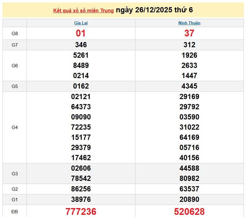 XSMT 26/12, KQXSMT 26/12. Xem lại kết quả xổ số miền Trung ngày 26/12/2025