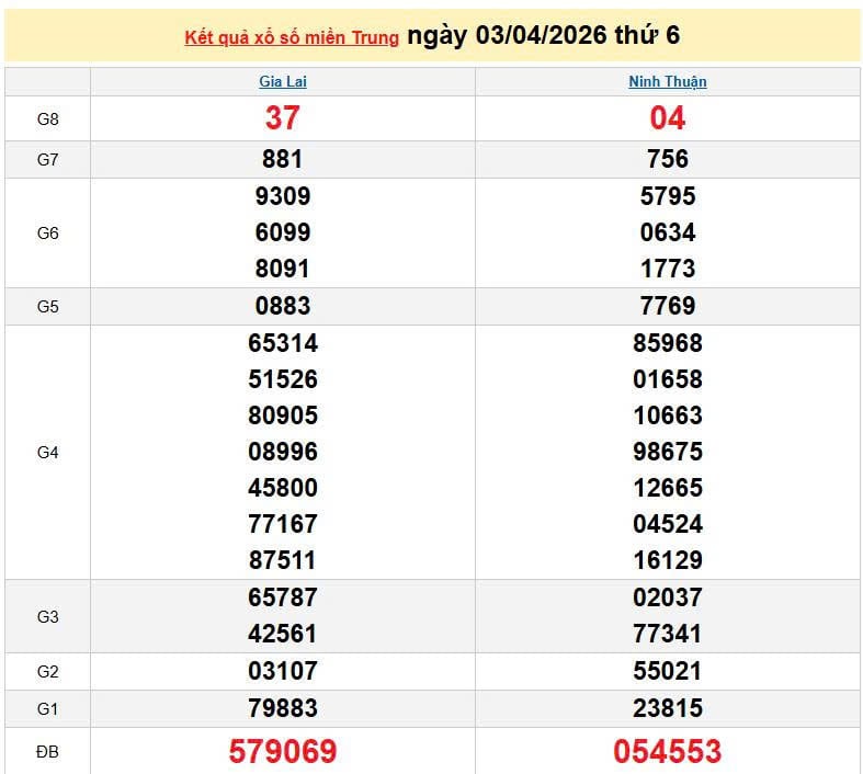 XSMT 3/4, KQXSMT 3/4. Xem lại kết quả xổ số miền Trung ngày 3/4/2026