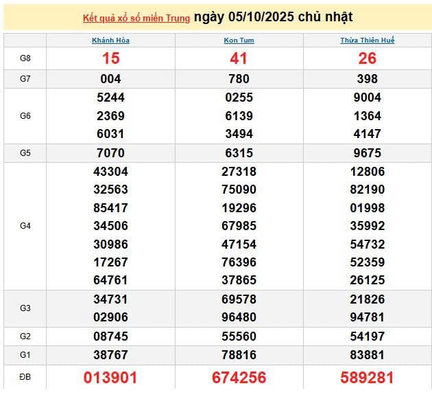XSMT 5/10, KQXSMT 5/10. Xem lại kết quả xổ số miền Trung ngày 5/10/2025