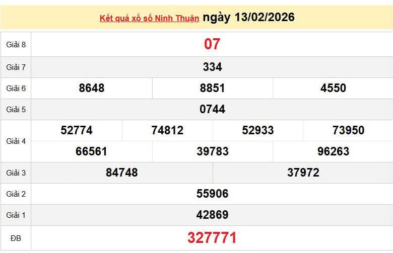 XSNT 13/2, KQXSNT 13/2. Xem lại kết quả xổ số Ninh thuận ngày 13/2/2026
