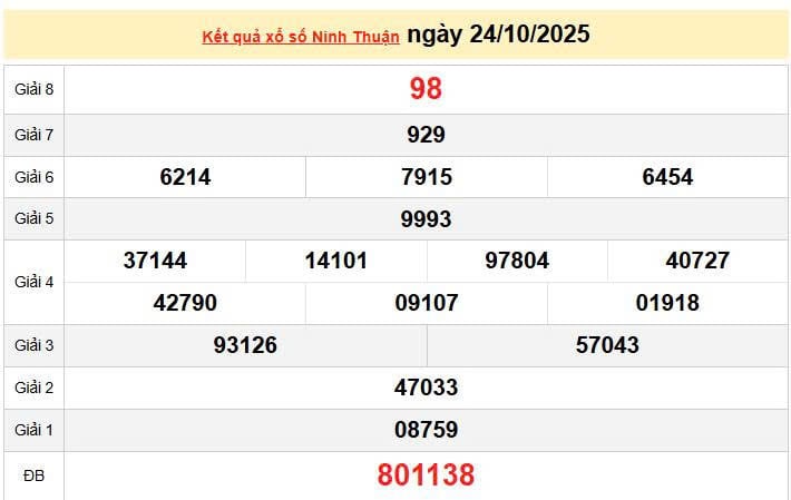 XSNT 24/10, KQXSNT 24/10, kết quả xổ số Ninh thuận ngày 24/10/2025