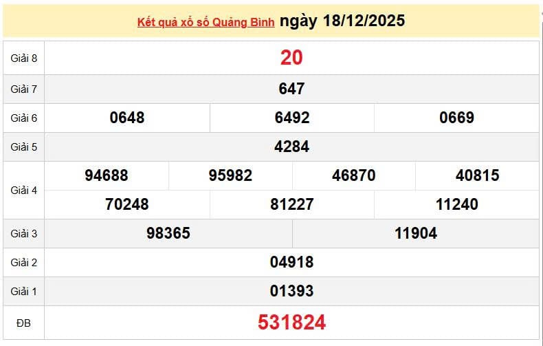 XSQB 18/12, KQXSQB 18/12. Xem lại kết quả xổ số Quảng Bình ngày 18/12/2025