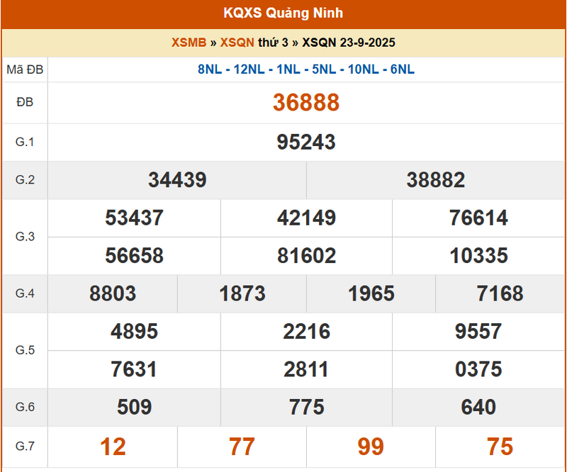 XSQN 23/9, KQXSQN 23/9. Xem lại kết quả xổ số Quảng Ninh ngày 23/9/2025