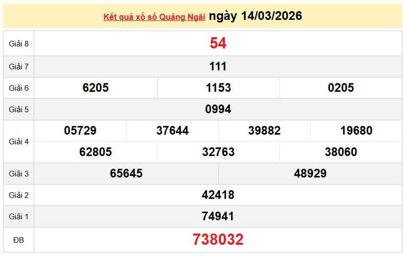 XSQNG 14/3, KQXSQNG 14/3. Xem lại kết quả xổ số Quảng Ngãi ngày 14/3/2026