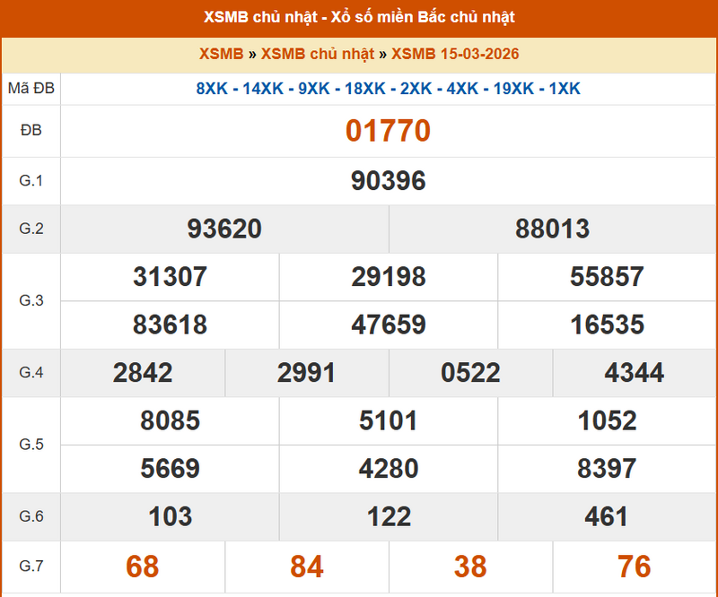 XSTB 15/3, KQXSTB 15/3. Xem lại kết quả xổ số Thái Bình ngày 15/3/2026