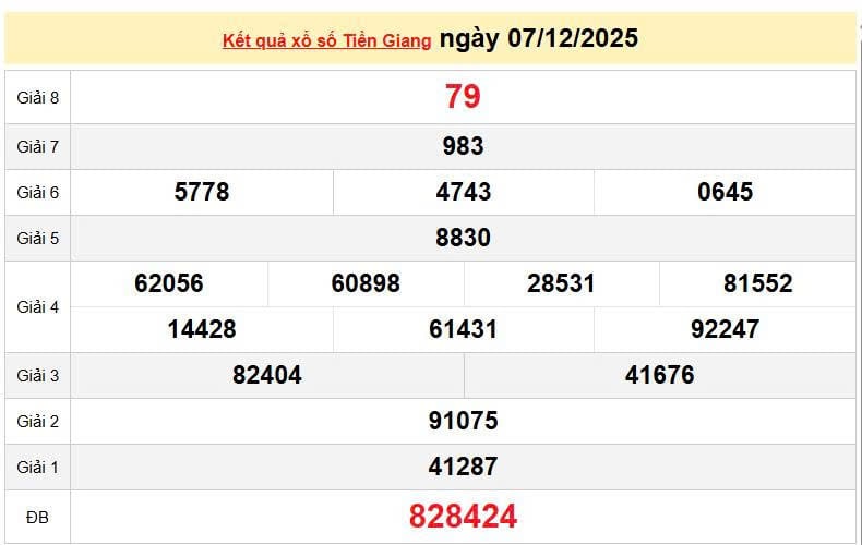 XSTG 7/12, KQXSTG 7/12. Xem lại kết quả xổ số Tiền Giang ngày 7/12/2025