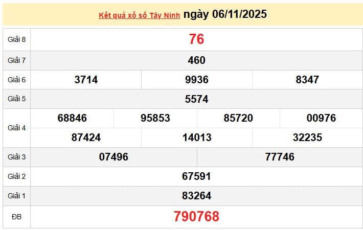 XSTN 6/11, KQXSTN 6/11, Xem lại kết quả xổ số Tây Ninh ngày 6/11/2025