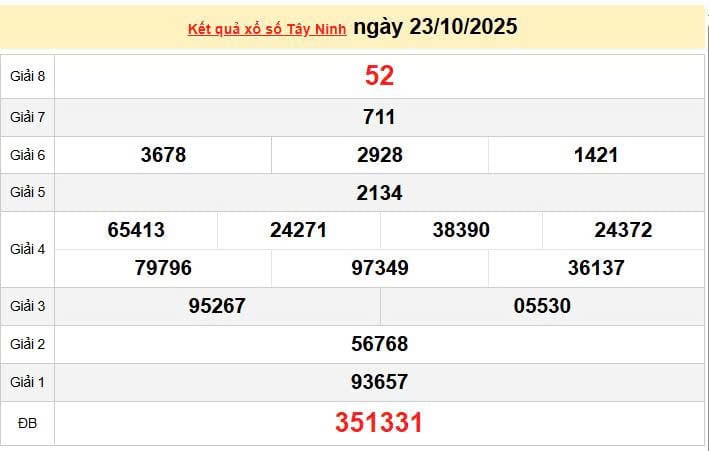 XSTN 23/10, KQXSTN 23/10, Xem lại kết quả xổ số Tây Ninh ngày 23/10/2025