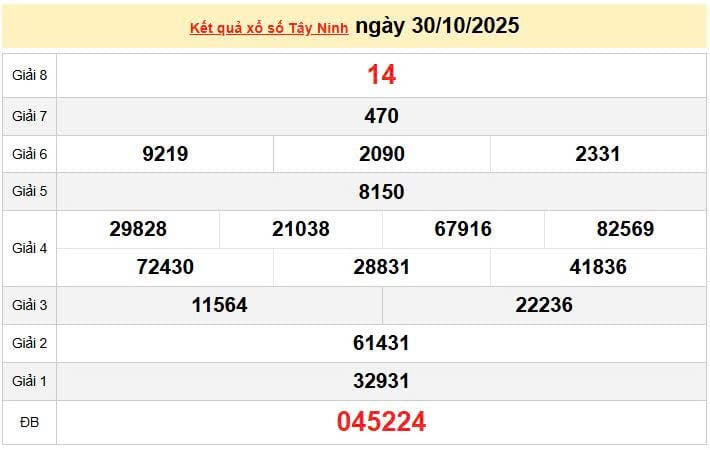 XSTN 30/10, KQXSTN 30/10, kết quả xổ số Tây Ninh ngày 30/10/2025