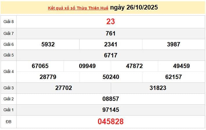 XSTTH 26/10, KQXSTHH 26/10. Xem lại kết quả xổ số Thừa Thiên Huế ngày 26/10/2025