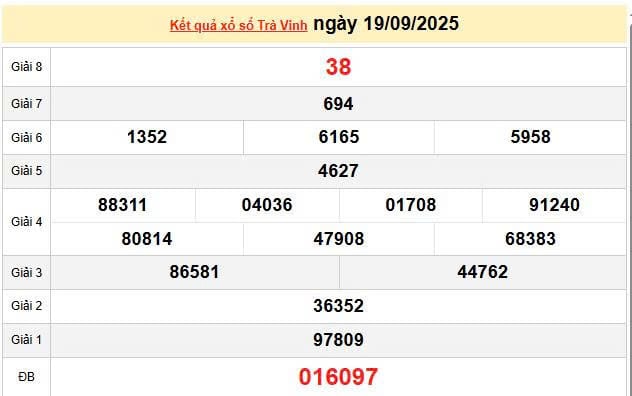 XSTV 19/9, KQXSTV 19/9. Xem lại kết quả xổ số Trà Vinh ngày 19/9/2025