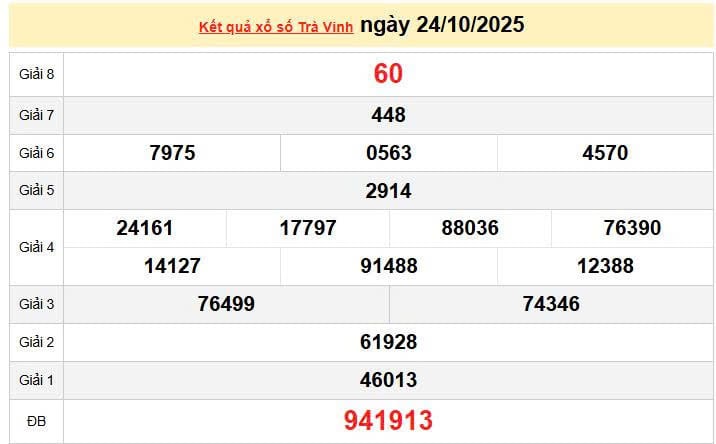 XSTV 24/10, KQXSTV 24/10, kết quả xổ số Trà Vinh ngày 24/10/2025