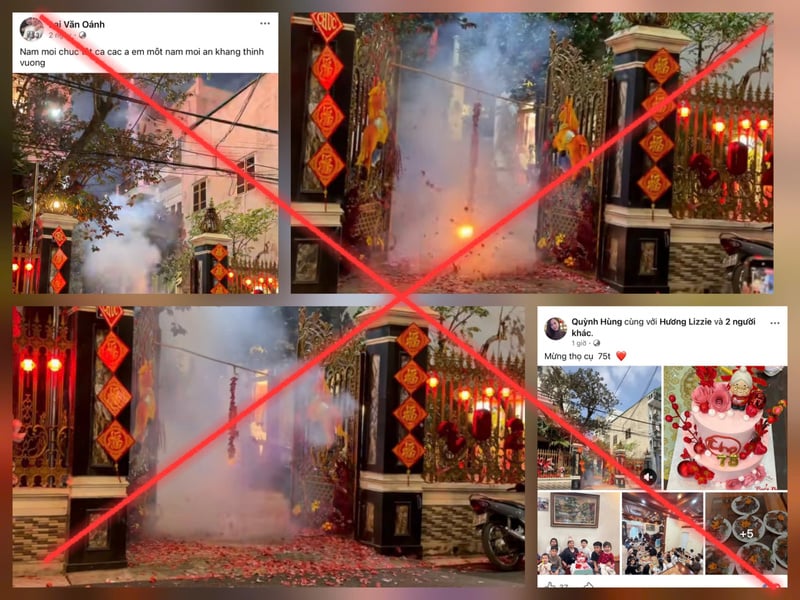 Ngày 21/2/2026, tài khoản Quỳnh Hùng chia sẻ dòng trạng thái “Mừng thọ cụ 75 tuổi”, kèm nhiều hình ảnh và một video dài 57 giây, ghi lại hoạt động đốt pháo cũng tại trước cổng “dinh sự” số 28 nêu trên.