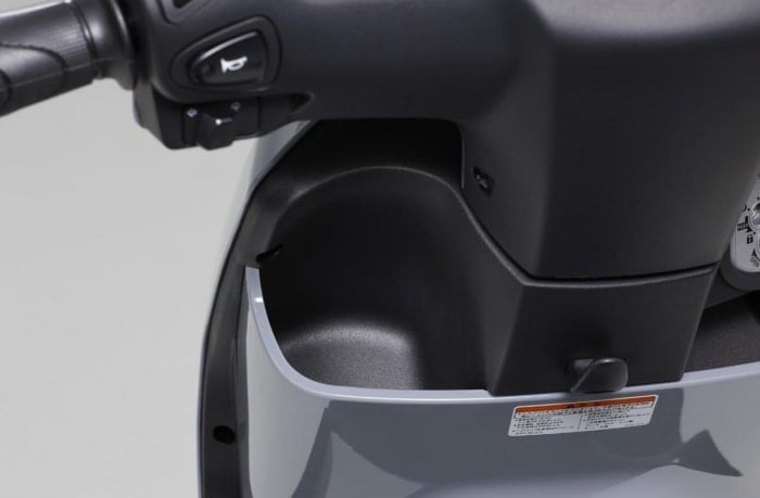 Ở phía trước, JOG E có hộc chứa đồ nhỏ, trong đó ngăn bên trái có thể đặt vừa chai nước 500 ml, còn ngăn bên phải tích hợp cổng sạc USB Type-A. Xe cũng có móc treo đồ tiện lợi và cốp nhỏ dưới yên đáp ứng nhu cầu di chuyển, mua sắm ngắn ngày trong đô thị.